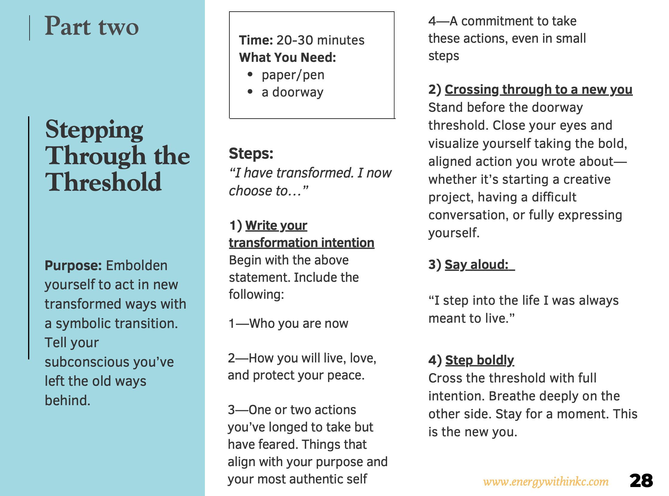 Here are parts one and two from the Transformation Ritual, one of the 7 healing practices from the full guide.